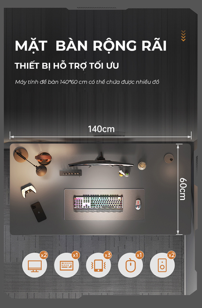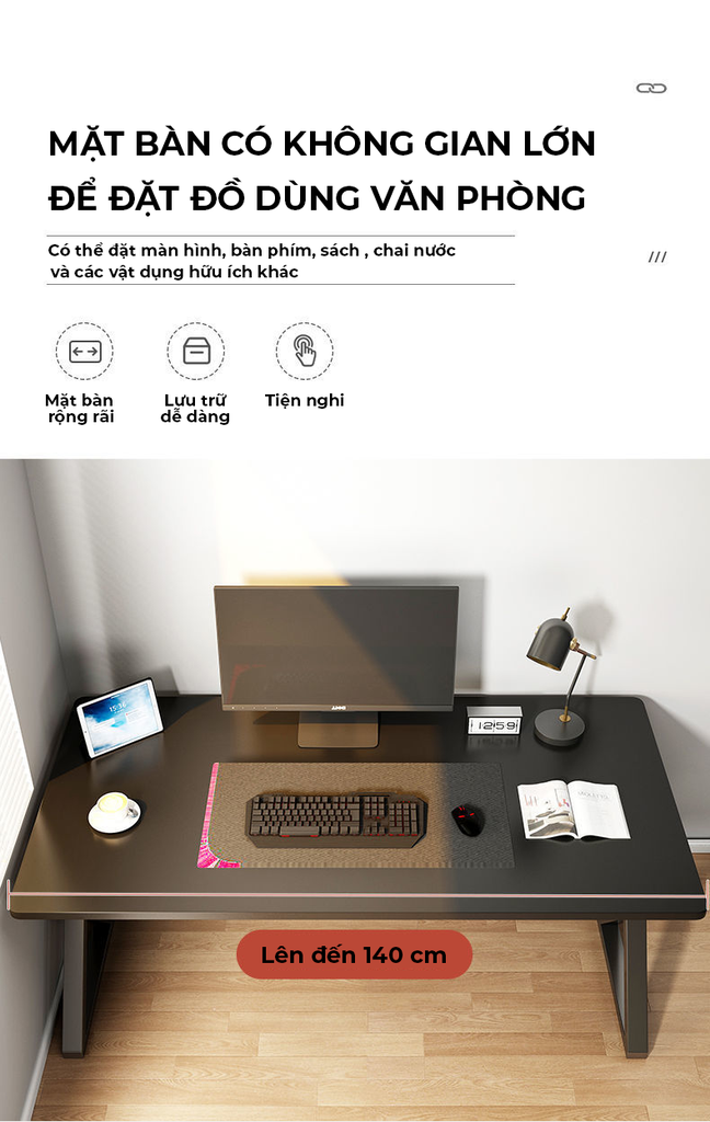- Có 2 lỗ đi dây điện trên mặt bàn + 01 ổ cắm USB 2 đầu nguồn