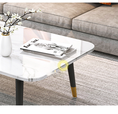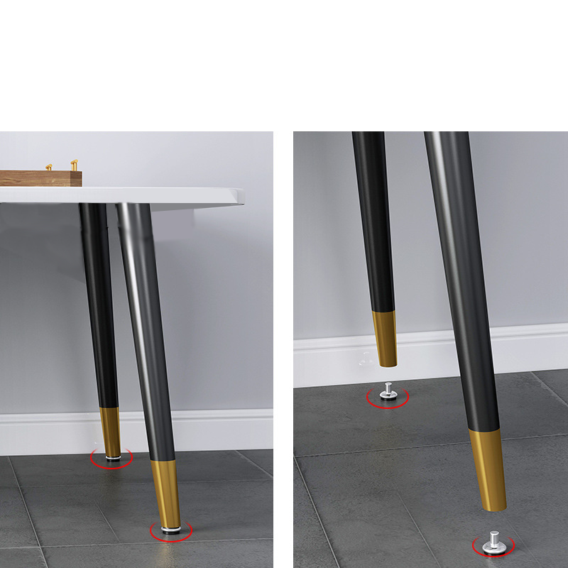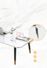 - Mặt bàn gỗ kết hợp với phần chân đen bóng mạ vàng làm tổng thể sản phẩm thêm hài hoà, đẹp mắt và tăng thẩm mỹ cho không gian nội thất của khách hàng.