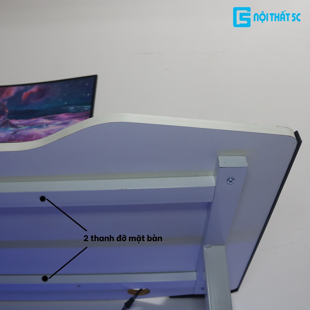 Thanh đỡ chịu lực 2x4cm là yếu tố quyết định giúp bàn gaming Nội Thất 5C nổi bật trên thị trường. Độ dày 2x4cm và chất liệu sắt sỡn tĩnh điện chắc chắn của thanh đỡ này không chỉ giúp bàn chịu được trọng lượng lớn mà còn tạo ra sự ổn định vượt trội trong suốt quá trình sử dụng.
