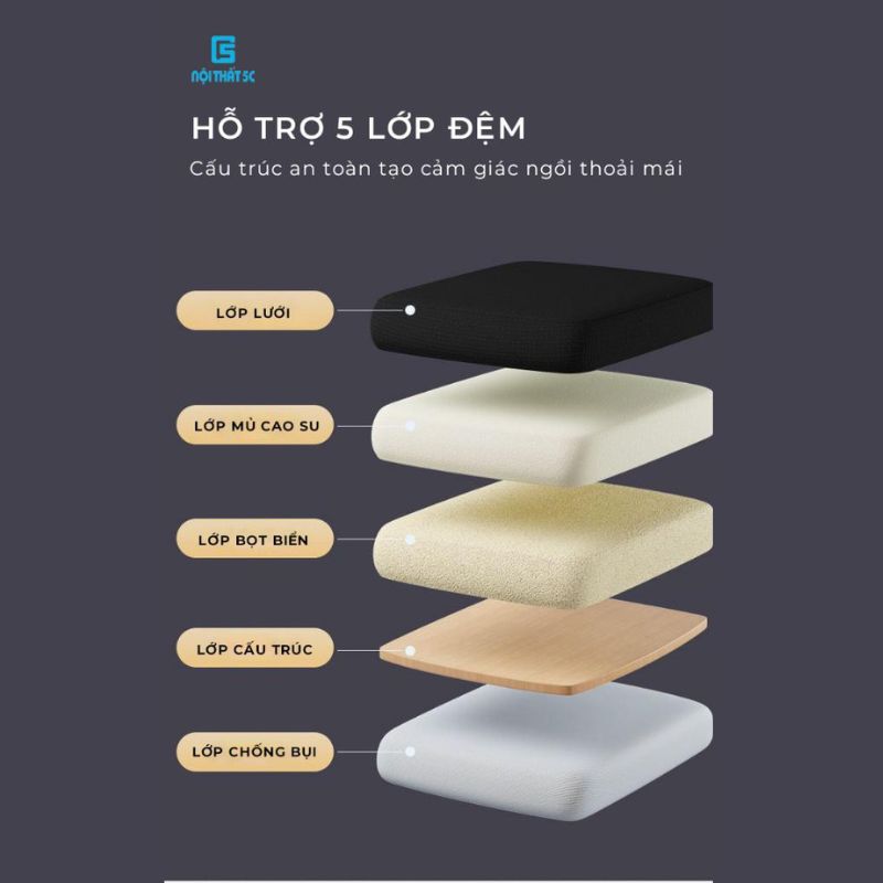- Chất liệu chọn lọc: Chất liệu bọc ghế thường là da, vải lưới thoáng khí hoặc chất liệu PU cao cấp, đảm bảo sự thoải mái và độ bền. Đệm ngồi của ghế được làm từ mút xốp Foam êm ái, không xẹp lún, không phai màu, không gât dị ứng da khi có sự tiếp xúc trực tiếp.