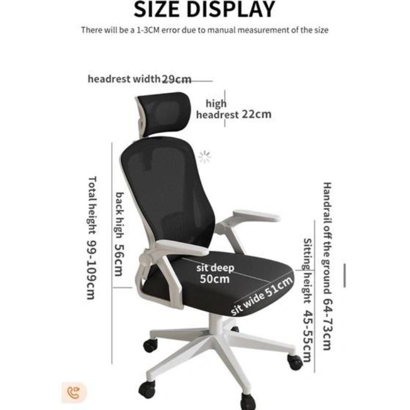 Chiếc ghế làm việc này có thể xoay 360 độ, có thể điều chỉnh độ cao của bàn tay và cánh tay khi cần thiết. Giúp bạn cảm thấy thoải mái khi làm việc. Giúp giảm cứng cổ, lưng và ngăn ngừa bệnh khớp gối. Tay cầm của ghế có thể điều chỉnh độ cao. Miếng đệm cổ có thể được điều chỉnh khi cần thiết. Kết cấu chắc chắn Bền bỉ, có thể chịu được trọng lượng lên tới 100kg, được làm từ chất liệu xốp cao cấp, nhẹ khi chạm vào Có khả năng thông gió tốt.