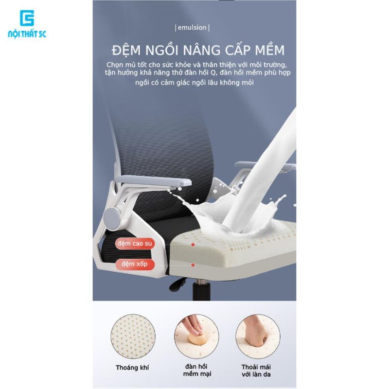 - Ghế văn phòng đệm ngồi lót đệm cao su được bọc vải lưới thoáng khí chống bám bám bẩn