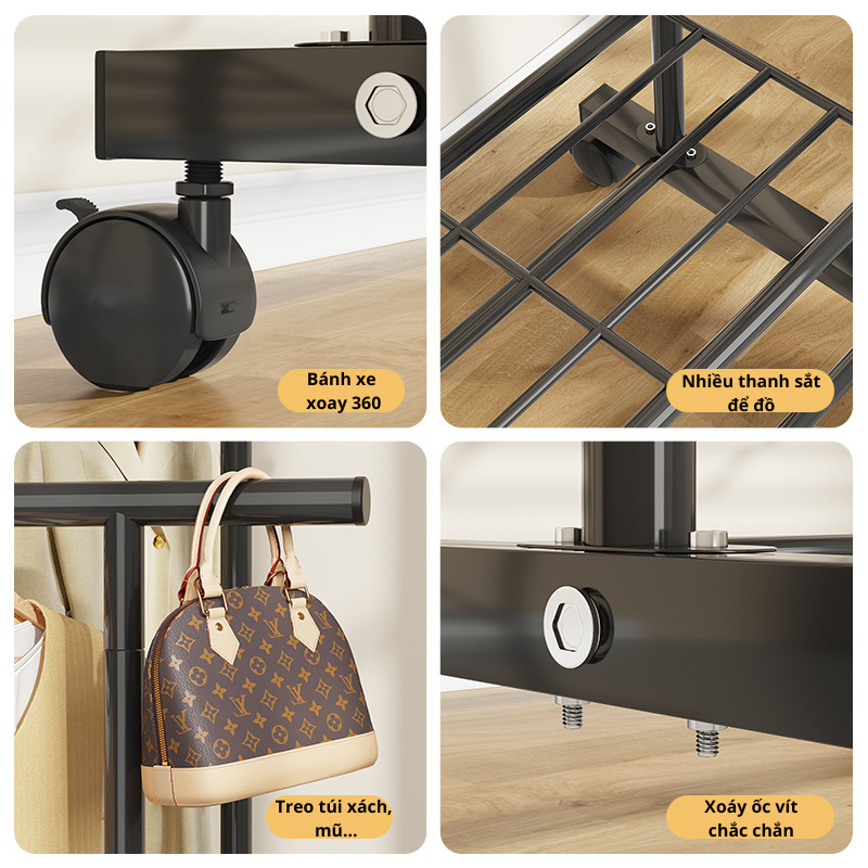 -Kết cấu độc đáo với vòm tròn giúp kệ tăng phần chịu lực tốt và đặc biệt giúp tối ưu được quần áo trong căn phòng trở nên gọn gàng nhất.