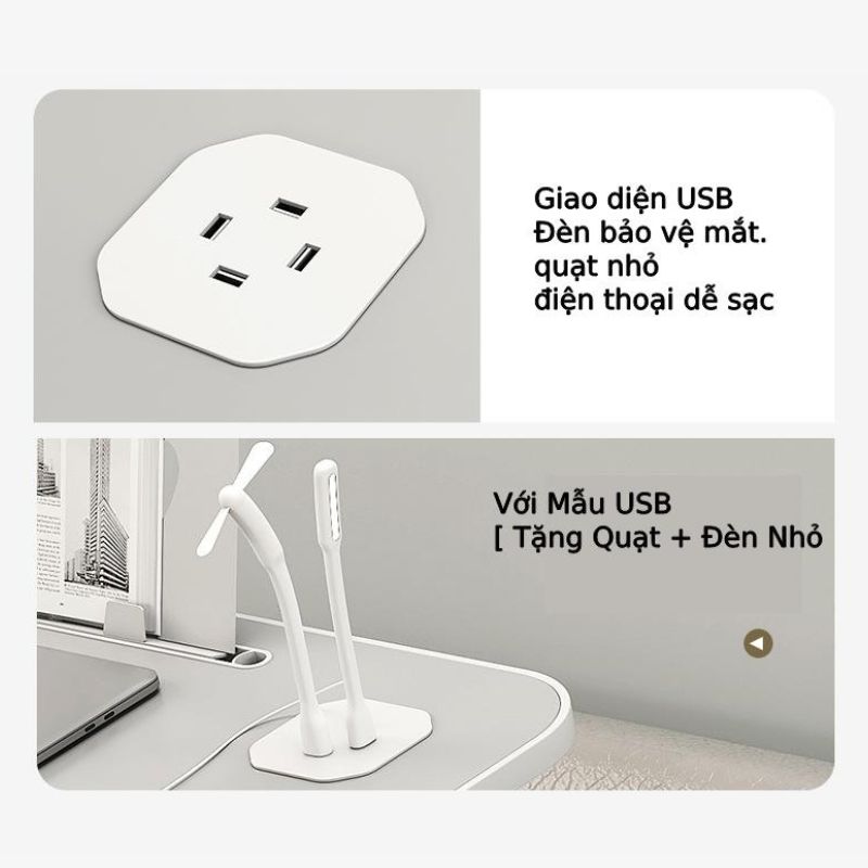 - Mẫu Standard gồm: Khe cắm IPAD, thanh chống trượt, ngăn kéo, Bộ 4 đầu cắm USB, quạt, Khay để cốc.