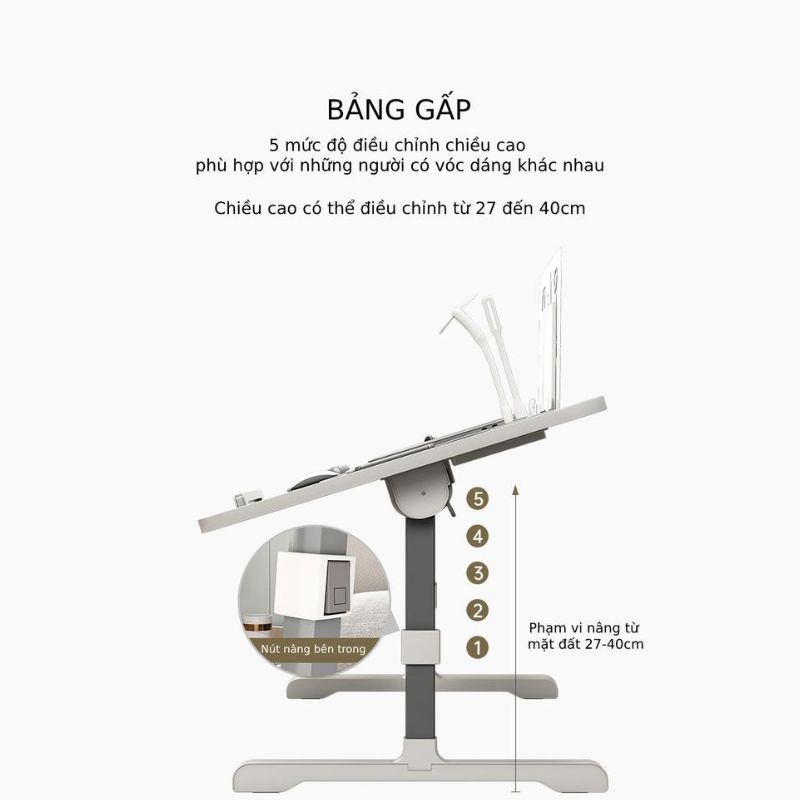 - Bàn có thể điều chỉnh chiều cao sao cho phù hợp nhất với mắt, giúp ngồi học tránh mỏi lưng – Dành cho học sinh, sinh viên, công chức, các bé mẫu giáo tập tô tập viết.