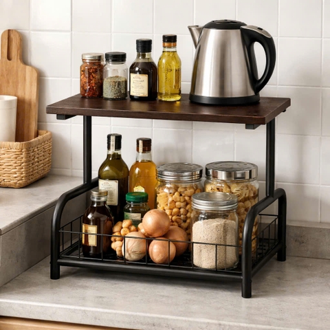 Kệ đa năng, kệ lò vi sóng khung thép, mặt gỗ K-983