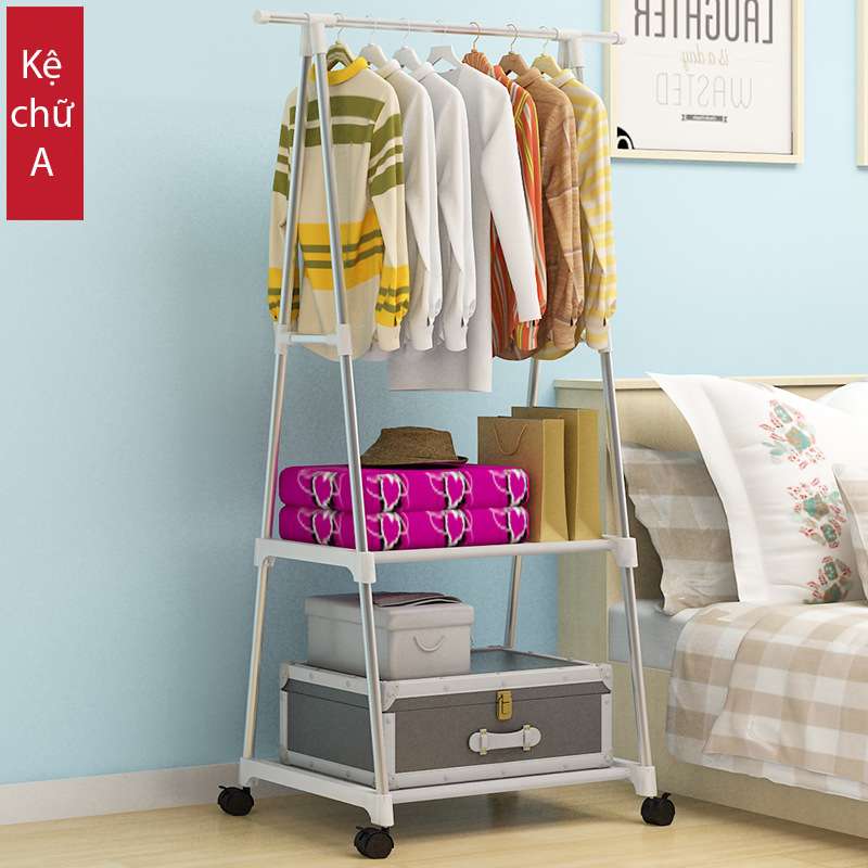 Bạn có thể dùng mẫu kệ này để trưng bày các mẫu quần áo đẹp trên móc treo và trưng bày quần áo hay các sản phẩm phụ kiện ở mặt mâm bên dưới mà vẫn đảm bảo được số lượng lớn và tính thẩm mỹ cho không gian trưng bày. Kệ chữ A có thể kết hợp thêm chân bánh xe để thuận lợi hơn trong việc di chuyển, tăng tính linh động của sản phẩm khi muốn dời từ vị trí này đến vị trí khác trong cửa hàng.