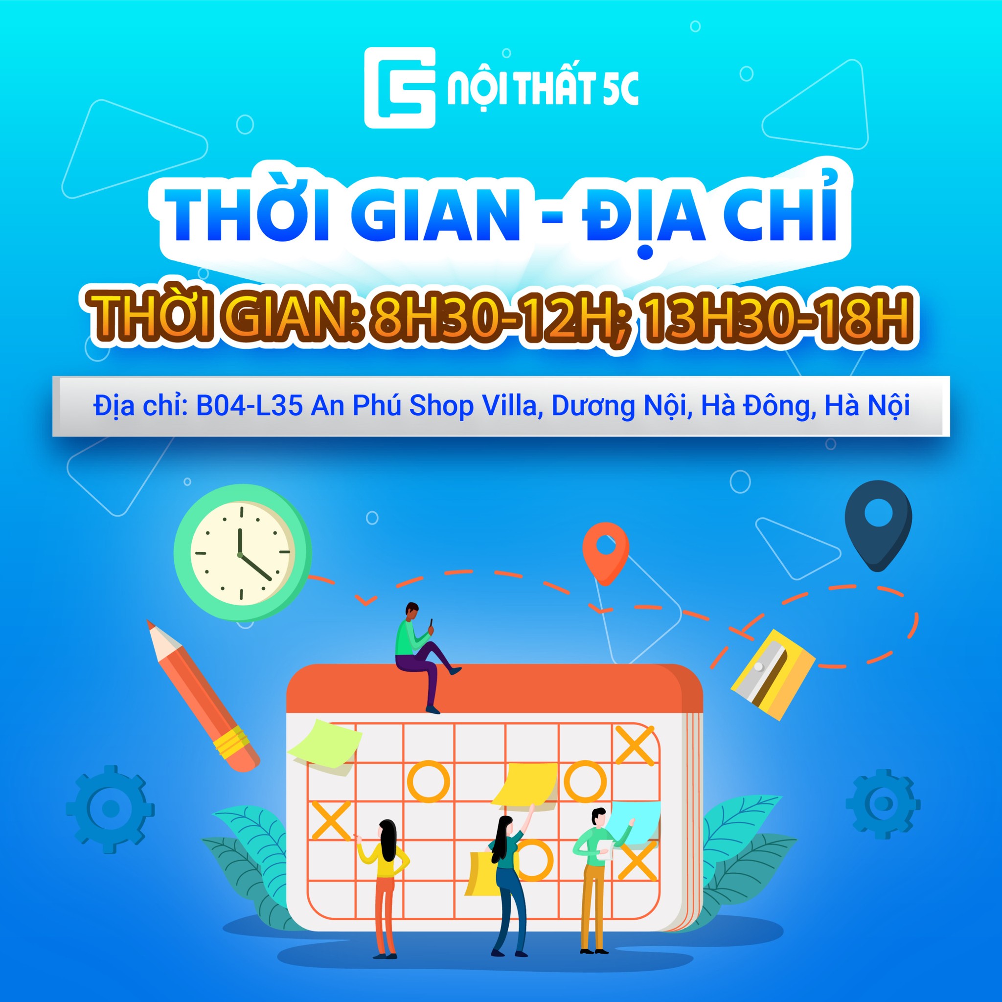 Thời gian làm việc: 8h30 tới 18h từ thứ 2 tới thứ 7 hàng tuần.